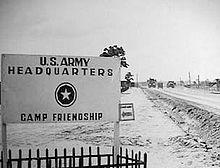 The United States Army Corps of Engineers were deployed and established a headquarters at the RTAF airfield that later became Korat RTAFB. The first facilities were built on the north side of the runway (14°56′22″N 102°04′59″E / 14.93944°N 102.08306°E). They included a hospital, some barracks and some warehouses for equipment that was flown in using the existing runway.[2] Under the agreement, United States forces using Thai air bases were commanded by Thai officers. Thai air police controlled access to the bases, along with USAF Security Police, who assisted them in base defense using sentry dogs, observation towers, and machine gun bunkers. The Geneva Accords of 1962 ended the immediate threat, but both Camp Friendship and Korat RTAFB were developed as part of the buildup of forces in Southeast Asia during the Vietnam War.[2]