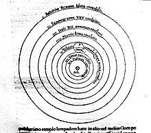 Astronomer and mathematician Nicolaus Copernicus was appointed by the Catholic Church as an official, as his uncle was a bishop in the church. He used his income to further his studies, eventually studying at the University of Bologna in Italy.[31] Copernicus began doubting the knowledge of natural philosophers and their beliefs, claiming that geometrical astronomy instead would result in the true reality of the cosmos. His manuscript, De revolutionibus, pioneered ideas that would change the course of how both the cosmos and astrology were viewed. Most notably, Copernicus claimed that the sun was the stationary center of the universe. His work also included calculations on the motions of the moon, and the motions in latitude and longitude of the planets, all which orbit the sun.[32] [33] Copernicus' work was not immediately published as it disagreed with Biblical teachings, and he feared his work would be rejected by Catholic officials.[34]