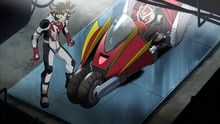 Kenji's motorcycle. Built by Build Base with the bronze bell as its core. While riding the motorcycle, Kenji can activate the Raikoba's transformation by slamming his fists together and yelling "Build Up!" (while wearing special yellow gloves emblazoned with a green "S"). The Raikoba will then transform into the Jeeg's head unit (much like how Hiroshi Shiba transformed into the Jeeg head, except he didn't need a motorcycle since he was a cyborg). Kenji later learns that his own parents were part of the Jeeg project and his father designed Raikoba.