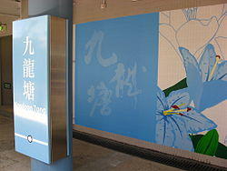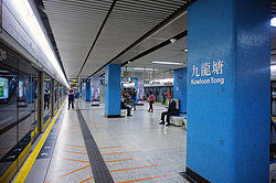 Kowloon Tong (Chinese: 九龍塘; Cantonese Yale: Gáulùngtòng) is a station on MTR's Kwun Tong line and East Rail line in New Kowloon, Hong Kong. The station serves Kowloon Tong and its vicinity, including Yau Yat Tsuen, the Festival Walk shopping centre, City University of Hong Kong and Hong Kong Baptist University.