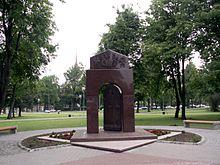 During World War II, the Nazi occupation saw the elimination of Kretinga's Jewish population. In June 1941, German forces and Lithuanian collaborators took about 200 Jewish men and some Lithuanian communist activists to a forest outside the town and shot them in pits that some of the Jewish men had been forced to dig. Several more mass shootings including women and children took place in July at the Kretinga Jewish cemetery.[4] As in neighbouring Palanga, local Lithuanian nationalists volunteered to assist in the killing of Jewish citizens as soon as the German army and police units had arrived.[5][6]