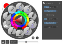 10 loaded brush presets | Colour ring selector | Zoom |