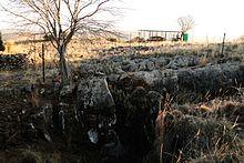 Kromdraai is a roofless dolomite cave on the southern side of Blaauwbank stream. Kromdraai is contained within the Cradle of Humankind and is approximately 2 kilometres (1.2 mi) east of the Sterkfontein fossil site. It consists of two fossil-bearing localities, Kromdraai A (KA) and Kromdraai B (KB). KA is located 30 metres (98 ft) to the south of KB. KB is the main fossil deposit at the Kromdraai site. The boundaries of both localities are lined by dolomite.[6]