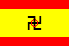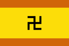 The Guna flag was adopted after the 1925 rebellion against Panamanian suppression. Horizontal stripes have a proportion of 1:2:1 and the central swastika is an ancestral symbol called Naa Ukuryaa. According to one explanation, it symbolizes the four sides of the world or the origin from which peoples of the world emerged.[5] Also known as the flag of Guna Yala island today, the flag is used for the province of San Blas and also as the Guna ethnic flag. The central stripe, meaning peace and purity, is white on the official flag of the reservation, officially adopted by Guna National Congress, while yellow stripe is used on the ethnic flag (it was introduced on the flag at about 1940). In 1942 the flag was modified with a red ring encompassing the center of the swastika because of Nazi associations; the ring was later abandoned.[6]