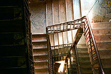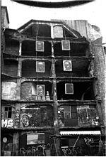 Originally called Friedrichstraßenpassage, it was built in 1907-1908 as a department store in the Jewish quarter (Scheunenviertel) of Berlin, next to the synagogue.[2] During World War II it served as a Nazi prison for a short while. Under GDR authorities it was later partially demolished. After the Berlin Wall had come down in 1989, it was taken over by artists, who called it Tacheles, Yiddish for "straight talking".[2] The building contained studios and workshops, a nightclub, and a cinema. Outside, the garden featured an open-air exhibition of metal sculptures as well as galleries and studios for sculptors and painters.