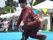 The presence of Chinese martial arts in the Malay Archipelago traces back to ancient contact between China and Southeast Asia. Donn F. Draeger goes so far as to call them the oldest major organised system of fighting in Indonesia, pre-dating structured teaching of silat.[1] The Toraja, Batak, and Dayak cultures all show Chinese influence, and Chinese weapons are often depicted in ancient Sumatran art. Some pre-colonial Chinese temples in Indonesia display combative images characteristic of southern Chinese forms, and many techniques and weapons of silat are of Chinese & Indian origin.[1] Many Peranakan families can still trace their clan history in the region as far back as the voyages of Admiral Zheng He,[2] but most Southeast Asian Chinese were brought to the Malay Archipelago as working-class immigrants during the colonial era.[3][4] In Indonesia in particular, every Chinese community had some form of kuntao, but were traditionally shrouded in secrecy.[1] As recently as the 1970s, kuntao was often practiced secretly to avoid its techniques from being revealed to outsiders, both Chinese and non-Chinese.[1] It was not openly displayed, and public demonstrations would hide the true forms.[1] This changed during the latter of the 20th century, and kuntao is now taught commonly taught without secrecy. Kuntao was introduced to the US by Willem Reeders and Willem de Thouars in the 1960s.