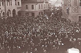 In 1994, the festival's program was extended to more than two days, featuring a multitude of events, performances in the square in front of the city hall, the burial of the Carnival, and an entertainment program in the carnival tent. From 1999 on, the Prince of the Carnival event was introduced with the enthronement of the Prince that takes place on 11 November (St. Martin's Day). This has become an important cultural and entertaining event in itself.
