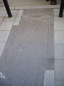 In 1989, a monument was installed in the pavement at the site of Eisner's assassination. It reads, Kurt Eisner, der am 9. November 1918 die Bayerische Republik ausrief, nachmaliger Ministerpräsident des Volksstaates Bayern, wurde an dieser Stelle am 21. Februar 1919 ermordet ("Kurt Eisner, who proclaimed the Bavarian republic on 8 November 1918 – later Prime Minister of the Republic of Bavaria – was murdered here on 21 February 1919").[14]