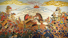 The historicity of the Kurukshetra War is subject to scholarly discussion and dispute.[1][2][3] It is possible that the Battle of the Ten Kings, mentioned in the Rigveda, may have "formed the 'nucleus' of the story" of the Kurukshetra war, though it was greatly expanded and modified in the Mahabharata's account making the Mahabharata's version of very dubious historicity.[4] Though the Kurukshetra War is not mentioned in Vedic literature, its prominence in later literature led British Indologist A. L. Basham, writing in 1954, to conclude that there was a great battle at Kurukshetra which, "magnified to titanic proportions, formed the basis of the story of the greatest of India's epics, the Mahabharata." Acknowledging that later "generations looked upon it as marking an end of an epoch," he suggested that rather than being a civil war it might have been "a muddled recollection of the conquest of the Kurus by a tribe of Mongol type from the hills." He saw it as useless to the historian and dates the war to the 9th century BCE based on archaeological evidence and "some evidence in the Brahmana literature itself to show that it cannot have been much earlier."[8][note 1]