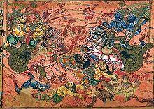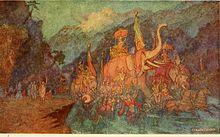 ![]() c. 1700 watercolour from Mewar depicts the Pandava and Kaurava armies arrayed against each other. | |||||||