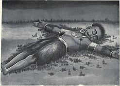 On the eighth day, Bhima killed 17 of Dhritarashtra's sons. Iravan, the son of Arjuna, and the snake-princess Ulupi killed five brothers of Shakuni, princes hailing from Gandhara. Duryodhana sent the Rakshasa fighter Alamvusha to kill Iravan, and the latter was killed by the Rakshasa after a fierce fight. The day ended with a crushing defeat of the Kauravas.