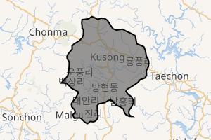 Kusŏng (Korean pronunciation: [ku.sʌŋ]) is a city in central North Pyongan province, North Korea. It borders Taegwan to the north, Taechon to the east, Kwaksan and Chongju to the south, and Chonma to the west. The highest point is Chongryongsan (청룡산, 920 m). The year-round average temperature is 8.2 °C, with a January average of -9.6 °C and an August average of 23.3 °C. 1300 millimeters of rain fall in a typical year. 22% of the county's area is cultivated; 64% is forested.