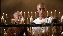 Years after his graduation, Caine traveled to the Forbidden City to meet Po, whose lifelong ambition had been to travel to a festival at the Temple of Heaven on that date, the full moon of May - the 13th day of the 5th month in the Year of the Dog. While they were talking together in the street, the Emperor's nephew and his entourage came along and an altercation ensued when a guard tried to push Po aside and was sent sprawling by the blind Shaolin. While defending himself from the other guards, Master Po was shot by the Emperor's nephew. Before the nephew could reload his pistol, the enraged Caine seized a guard's fallen spear and killed the Imperial nephew. With his dying words, Po gave Caine his pouch containing his few worldly possessions and instructed Caine to flee from China as there would be both no place to hide and a price on his head.[3] Before he fled China, Caine returned to the temple to confess his deed to Master Kan.[4] Later, Imperial guards attacked and stormed the temple, only to find it deserted (the monks having fled before the army's arrival); in retaliation, they burned the temple to the ground.