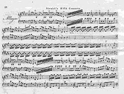 In our younger days, the fifth concerto of Vivaldi, composed of rattling passages in perpetual semiquavers, was the making of every player on the violin, who could mount into the clouds, and imitate not only the flight, but the whistling notes of birds.