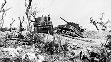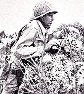 ![]() US Marine from the 2nd Battalion, 1st Marines on Wana Ridge provides covering fire with his Thompson submachine gun, May 18, 1945. | |||||||