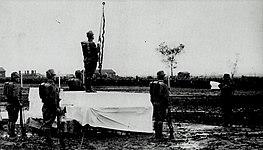 The last remnants of Japanese resistance ended on June 21, although some Japanese continued hiding, including the future governor of Okinawa Prefecture, Masahide Ōta.[35] Ushijima and Chō committed suicide by seppuku in their command headquarters on Hill 89 in the closing hours of the battle.[12]:468–71 Colonel Yahara had asked Ushijima for permission to commit suicide, but the general refused his request, saying: "If you die there will be no one left who knows the truth about the battle of Okinawa. Bear the temporary shame but endure it. This is an order from your army Commander."[26]:723 Yahara was the most senior officer to have survived the battle on the island, and he later authored a book titled The Battle for Okinawa. On June 22 Tenth Army held a flag-arising ceremony to mark the end of organized resistance on Okinawa. On June 23 a mopping-up operation commenced, which concluded on June 30.[12]:471–3
