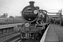 All of the class were in good working order at the time of the nationalisation of the British Railways in 1948, and continued to be well maintained until the latter half of 1961. They were renumbered by adding 30,000 to the SR number. Between 1949 and 1953 the feedwater heating was replaced by cold water injection, for reasons of cost, and latterly many examples were fitted with Automatic Warning System equipment, and water treatment equipment. With the reduction in freight traffic they began to be also used on secondary services. However, after the summer of 1956 the class also acquired one prestige passenger duty on the Newhaven boat-trains, following the withdrawal of the 'Marsh Atlantics'.[14]
