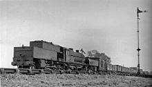 The roundhouses at Toton MPD had to have extra length Garratt roads to accommodate them. Mostly used for heavy coal trains, they later found other uses as well. Others were allocated to Wellingborough (depot code 45A where 15 locomotives were located in the 1950s) and Hasland near Chesterfield. Trains for Manchester were generally routed along the Hope Valley Line and the Garratts normally came off their trains at the Gowhole freight sidings just south of Chinley. A few would work the Ambergate to Pye Bridge Line using the north curve at Ambergate, but only as far as Rowsley, where the train would be split. This was normal for goods trains because of the danger of couplings breaking on the climb to Peak Forest. In addition, although they had ample tractive effort to climb the gradient, in the days before goods wagon trains had continuous brakes there were problems on the way down into Chinley. On an early attempt, the loco was inspected at Heaton Mersey and it was found that all of its brake blocks had melted.[1]