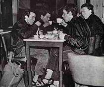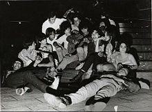 Under the direction of art critic Jorge Romero Brest, during the decade the Torcuato di Tella Institute became a leading center of avant-garde art production, with young artists venturing into pop art, happenings, installation art, and psychedelic art, as well as featuring folk and beat musical performances.[20] It was a central part of the "manzana loca" (English: "crazy block"), which "[encompassed] nearby art galleries, book shops, and university buildings".[24] The area also "served as a human showcase of the latest fashions and styles".[25] On the other hand, the rock music scene mostly met in La Cueva or gathered in parks such as Plaza Francia to play their guitars,[20] something musician Miguel Cantilo described as, "an act of affirmation and identification," because until then, traditional guitar-playing gatherings were reserved to folk music.[26] In Víctor Pintos' biography of Tanguito, Rocky Rodriguez recalled: "La Cueva was totally like a Babel, it was like those biblical stories of the desert, where caravans come from various sides, and they all land in the same place."[27] Among the group were musicians such as Los Gatos (led by Litto Nebbia), Moris (leader of Los Beatniks), Javier Martínez, Billy Bond (leader of Los Guantes Negros), Los Búhos, Las Sombras (which covered the instrumental rock of the Shadows), Tanguito, Miguel Abuelo, Pajarito Zaguri; writers like Miguel Grinberg, Juan Carlos Kreimer and Pipo Lernoud, and other bohemian artists and poets.[27][28][29] In 1966, this generation created a new style of urban youth music, which tried to reflect an everyday reality absent from popular music since the tango era. It was initially known as "beat music" and later "progressive music", and is now considered the origin of rock nacional (Spanish for "national rock").[30] They mostly emulated the Beatles and the Rolling Stones, although there were also influences from Los Teen Tops, Bob Dylan, Joan Baez, Jimi Hendrix, Crosby, Stills, Nash & Young, and Frank Zappa.[31][32] They were also influenced by the Beat Generation writers.[7] La Cueva was very popular among porteño bohemians, and its existence even came to be known in Paris, prompting Juliette Gréco to visit the bar while in Buenos Aires.[23] It has been compared to The Cavern Club of Liverpool, England.[33] In 2005, Lernoud reflected: