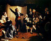 The Convention accepted it as the French national anthem in a decree passed on 14 July 1795, making it France's first anthem.[6] It later lost this status under Napoleon I, and the song was banned outright by Louis XVIII and Charles X, only being re-instated briefly after the July Revolution of 1830.[7] During Napoleon I's reign, "Veillons au Salut de l'Empire" was the unofficial anthem of the regime, and in Napoleon III's reign, it was "Partant pour la Syrie". During the nineteenth and early twentieth centuries, "La Marseillaise" was recognised as the anthem of the international revolutionary movement; as such, it was adopted by the Paris Commune in 1871, albeit with new lyrics under the title "La marseillaise de la Commune". Eight years later, in 1879, it was restored as France's national anthem, and has remained so ever since.