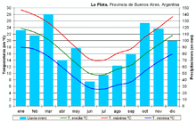 - ^ a b "Clima en la Argentina: Guia Climática por La Plata Aero". Caracterización: Estadísticas de largo plazo (in Spanish). Servicio Meteorológico Nacional. Archived from the original on 4 September 2017. Retrieved 4 October 2017.