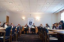 The university is led by its board of trustees headed by a president and chair.[9] The president serves one or more 5–year terms.[10] As of 2015, there have been 29 Presidents. Students are represented through a democratically elected student government. The La Salle Students' Government Association sits on numerous committees led by staff and administrators, including some board meetings.[11] La Salle's student government is a founding member of the American Student Government Association.[12] The president's office, formerly located in the historic Peale House, is now in College Hall, the former business school building.