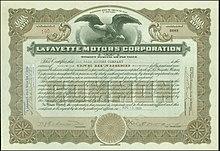 The LaFayette Motors Corporation was a United States-based automobile manufacturer. Founded in 1919, LaFayette Motors was named in honor of the Marquis de la Fayette, and LaFayette autos had a cameo of the Marquis as their logo.