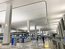 On December 9, 2017, six airlines moved at LGA. Alaska Airlines and JetBlue moved to the Marine Air Terminal. American consolidated in Terminal B. Frontier and Spirit depart from Terminal C and arrive at Terminal D.[45] The first half of the seven-level West Parking Garage opened in February 2018, with 1,600 of 3,100 parking spaces being made available, and the rest of the garage was opened later that year.[46][35] Eleven new gates at Terminal B opened on December 1, 2018, and were used by Air Canada, American Airlines, and Southwest Airlines. Five additional new gates opened on June 2, 2019, when United relocated most of its operations to the new concourse.[47][48][49] The new space included a concourse with a 55-foot-tall (17 m) ceiling, food concessions, an FAO Schwarz toy store, and an indoor play area.[49] Delta opened Concourse G on the eastern end of the airport on October 29, 2019.[50][51] Delta Shuttle flights moved to the Concourse G on November 16, 2019.[52] The new headhouse at Terminal B opened on June 13, 2020, along with the new connector to the Eastern Concourse. On August 5, 2020, American opened the first seven gates of the Western Concourse, with ten additional gates and the bridge connector scheduled to open at the end of 2021.[53][54] Delta is also planning to fast-track its renovation at Terminal C, with the Terminal C headhouse scheduled to open in 2021.[55]