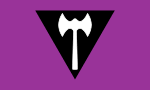 In the 1970s, the labrys was adopted by the lesbian community as a lesbian feminist symbol representing strength and self-sufficiency.[24][25][26][27][28] The labrys lesbian flag, created in 1999,[29] involves a labrys superimposed on the inverted black triangle and set against a violet background.