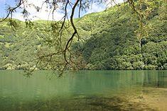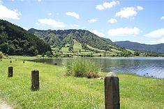 Lagoa das Sete Cidades (Portuguese: [lɐˈɡo.ɐ dɐs ˈsɛt(ɨ) siˈdadɨʃ], "Lagoon of the Seven Cities") is a twin lake situated in the crater of a dormant volcano on the Portuguese archipelago of the Azores. It consists of two small, ecologically different lakes connected by a narrow strait, which is crossed by a bridge. The volcano is located on the western third of the island of São Miguel. The Lagoa das Sete Cidades part of a natural landscape of communitarian interest: it is the largest body of water in the region and one of the most important freshwater resources in the archipelago.
