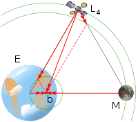 - The Earth–Moon L4 and L5 points contain concentrations of interplanetary dust, known as Kordylewski clouds.[9][10] Stability at these specific points is greatly complicated by solar gravitational influence.[11]