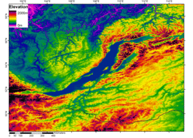 Baikal's age is estimated at 25–30 million years, making it the most ancient lake in geological history.[11][12] It is unique among large, high-latitude lakes, as its sediments have not been scoured by overriding continental ice sheets. Russian, U.S., and Japanese cooperative studies of deep-drilling core sediments in the 1990s provide a detailed record of climatic variation over the past 6.7 million years.[18][19] Longer and deeper sediment cores are expected in the near future. Lake Baikal is the only confined freshwater lake in which direct and indirect evidence of gas hydrates exists.[20][21][22]