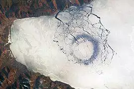 The average surface temperature has risen by almost 1.5 °C (2.7 °F) in the last 50 years, resulting in a shorter period where the lake is covered by ice.[12] At some locations, hydrothermal vents with water that is about 50 °C (122 °F) have been found. These are mostly in deep water but locally have also been found in relatively shallow water. They have little effect on the lake's temperature because of its huge volume.[30]