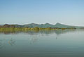 Lake Chamo northern end lies in the Nechisar National Park. According to figures published by the Central Statistical Agency, it is 32 kilometers long and 13 wide, with a surface area of 317 square kilometers and a maximum depth of 14 meters with a catchment of about 18757 square kilometers in size.[1][2] Other sources locate it on an elevation of 1,235 meters with a length of 26 km a widths of 22 km an area of 551 square kilometers a chatchment of 2220 square kilometers and a maximum depth of 10 meters.[3]