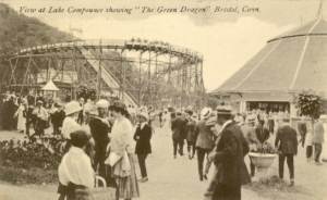 In 1914, Lake Compounce opened the Green Dragon, the park's first electric-powered roller coaster. The coaster was torn down in 1927 to make room for the Wildcat, a wooden coaster designed by Schmeck and built by the Philadelphia Toboggan Company.