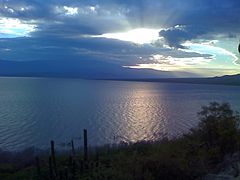 The region has a hot, semiarid climate. Annual rainfall is not evenly distributed, with peak precipitation occurring in May and October. The dry season is December through April when rainfall may be less than 20 mm (0.79 in). Due to the length of the lake, annual rainfall averages also vary at the eastern and western ends: 729 mm (28.7 in) on the northwest shore, and 508 mm (20.0 in) in the southeast.[6]
