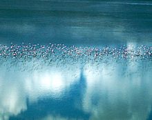 Lake Makgadikgadi was a paleolake that existed in what is now the Kalahari Desert in Botswana from 2,000,000 years BP to 10,000 years BP. It may have once covered an area of from 80,000 to 275,000 km2 (30,888 to 106,178 sq mi) and was 30 m deep.[1] The Okavango, Upper Zambezi, and Cuando rivers once all emptied into the lake. Its remains are seen in the Makgadikgadi salt pans, one of the largest salt pans in the world.