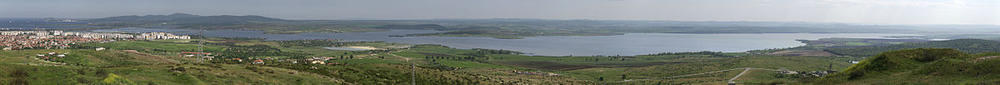 Lake Mandrensko or Lake Mandra (Bulgarian: Мандренско езеро, Mandrensko ezero) is the southernmost of the Burgas Lakes, located in the immediate proximity of the Black Sea and close to Burgas. Being 8 km long and 1.3 km wide at maximum, as well as having an area of 38.84 km², it was a brackish natural lake until 1963, when it was turned into a reservoir with the construction of a dam to secure fresh water for the large Neftochim Burgas oil refinery. The rivers Izvorska, Fakiyska, Sredetska and Rusokastrenska flow into the lake.