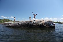 Unlike most lakes in Ontario, Lake Nipissing contains two volcanic pipes, which are the Manitou Islands and Callander Bay.[2] The volcanic pipes formed by the violent, supersonic eruption of deep-origin volcanoes. Lake Nipissing lies in the Ottawa-Bonnechere Graben, a Mesozoic era rift valley that formed 175 million years ago.