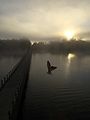 In 1937 the Derwent river was dammed just below the lake, and a pumping station installed - enabling Hydro Tasmania to drain the lake up to 6 metres and feed water to the Tarraleah Power Station. The fluctuating water levels have caused erosion and environmental degradation since.[4] The pumphouse was decommissioned in the 1990s, and transformed into a hotel in 2015.[5]