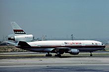 A Laker Airways McDonnell Douglas DC-10 series 10[30] was one of four widebodies that were specially flown in for the pre-inauguration of the then-new terminal building at Berlin's Tegel Airport on 23 October 1974. (A British Airways Lockheed L-1011 Tristar 1,[31] a Pan Am Boeing 747-100[32] and an Air France Airbus A300 B2[30] were the other widebodies specially flown in on that day to mark this occasion.)[33]