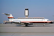 Laker had placed this order directly with the manufacturer in 1966. He provided more than £200,000 of his own money for the newly ordered aircraft's deposits and arranged for the remainder to be borrowed from a consortium of City banks led by Clydesdale Bank.[4][10] He placed a follow-on order for a fourth aircraft to be delivered in 1968 and acquired another relatively new aircraft that was originally delivered to the failed British Eagle airline from Bahamas Airways in 1971.[11][12][13] These were the mainstay of the fleet for its short- and medium-haul charter operations to holiday resorts in the Mediterranean and the Canary Islands for many years.