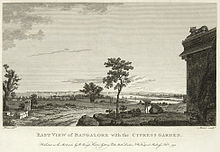 The Lalbagh gardens were commissioned by the 18th century and over the years it acquired India's first lawn-clock and the subcontinent's largest collection of rare plants.[3] After the British conquest of Mysore in 1799, the garden was under the charge of Major Gilbert Waugh, Company paymaster and in 1814 its control was transferred to the Government of Mysore with an appeal by Waugh to the Marquis of Hastings that it should be under the botanical garden at Fort William, Calcutta. This was accepted and the charge for supervision was given to Nathaniel Wallich on 24 April 1819. This continued until 1831 when charge moved to the Mysore Commissioner. An Agricultural and Horticultural Society had been formed with William Munro, an army officer and amateur botanist in charge of the Bangalore chapter. The Society wrote to the Mysore Commissioner, Sir Mark Cubbon, requesting charge of the Lalbagh garden. Cubbon granted control and during this period it was used for horticultural training. The Bangalore chapter of the Society was dissolved in 1842, leaving the gardens unmanaged.[1][4]