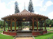 Lalbagh Botanical Garden (Kannada: ಲಾಲ್ಬಾಗ್ ಬೊಟಾನಿಕಲ್ ಗಾರ್ಡನ್), or shortened Lalbagh, is an old botanical garden in Bengaluru, India. First planned and laid out during the dalavaiship of Hyder Ali and later adorned with unique plant species by his son Tippu, it was later managed under numerous British Superintendents before Indian Independence. It was responsible for the introduction and propagation of numerous ornamental plants as well as those of economic value. It also served a social function as a park and recreational space, with a central glass house dating from 1890 which was used for flower shows. In modern times it hosts two flower shows coinciding with the week of Republic Day (26 January) and Independence Day (15 August). As an urban green space along with Cubbon Park, it is also home to numerous wild species of birds and other wildlife. The garden also has a lake adjoining a large rock on which a watchtower had been constructed during the reign of Kempegowda II.