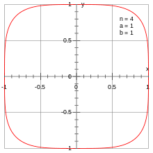 where .[1] It looks like a rounded square with "sides" of length and centered on the origin. This curve is a squircle centered on the origin, and it is a special case of a superellipse.[2]