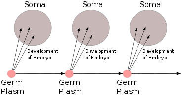 The idea that germline cells contain information that passes to each generation unaffected by experience and independent of the somatic (body) cells, came to be referred to as the Weismann barrier, as it would make Lamarckian inheritance from changes to the body difficult or impossible.[15]