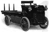 Model A truck came with a wheelbase of 96 inches (2,400 mm), gauge 56 inches (1,400 mm). It was a 2-passenger truck. The rear Firestone wheels were 32 inches (810 mm) in diameter by 4 inches (100 mm) wide. The front Firestone wheels were 32 inches (810 mm) in diameter by 3.5 inches (89 mm) wide. The motor was a pair of opposed cylinders 5.5X6 set in rear of driver's seat of the vehicle. It came with a friction disk drive, side chains to the rear wheels. It weighed 3000 pounds and had a pay load capacity of 3000 pounds. It cost $2000. A truck platform and a driver's hood was an extra option.[4]