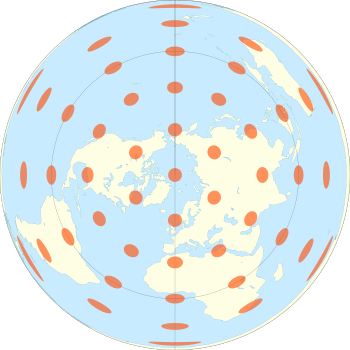 The Lambert azimuthal projection is used as a map projection in cartography. For example, the National Atlas of the US uses a Lambert azimuthal equal-area projection to display information in the online Map Maker application,[3] and the European Environment Agency recommends its usage for European mapping for statistical analysis and display.[4] It is also used in scientific disciplines such as geology for plotting the orientations of lines in three-dimensional space. This plotting is aided by a special kind of graph paper called a Schmidt net.[5]