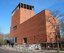 Immediately outside the gatehouse stands the former parish church of St Mary-at-Lambeth. The tower dates from 1377 (repaired in 1834); while the body of the church was rebuilt in 1851 to the designs of Philip Hardwick.[11] Older monuments were preserved: they include the tombs of some of the archbishops (including Richard Bancroft), of the gardeners and plantsmen John Tradescant the elder and his son of the same name, and of Admiral William Bligh. St Mary's was deconsecrated in 1972, when the parish was absorbed into the surrounding parish of North Lambeth which has three active churches, the nearest being St Anselm's Church, Kennington Cross.[12][13] The Museum of Garden History (now the Garden Museum) opened in the building in 1977, taking advantage of its Tradescant associations.