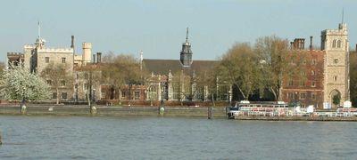 Lambeth Palace is the official London residence of the Archbishop of Canterbury. It is situated in north Lambeth, London, on the south bank of the River Thames, 400 yards (370 metres)[1] south-east of the Palace of Westminster, which houses the Houses of Parliament, on the opposite bank.